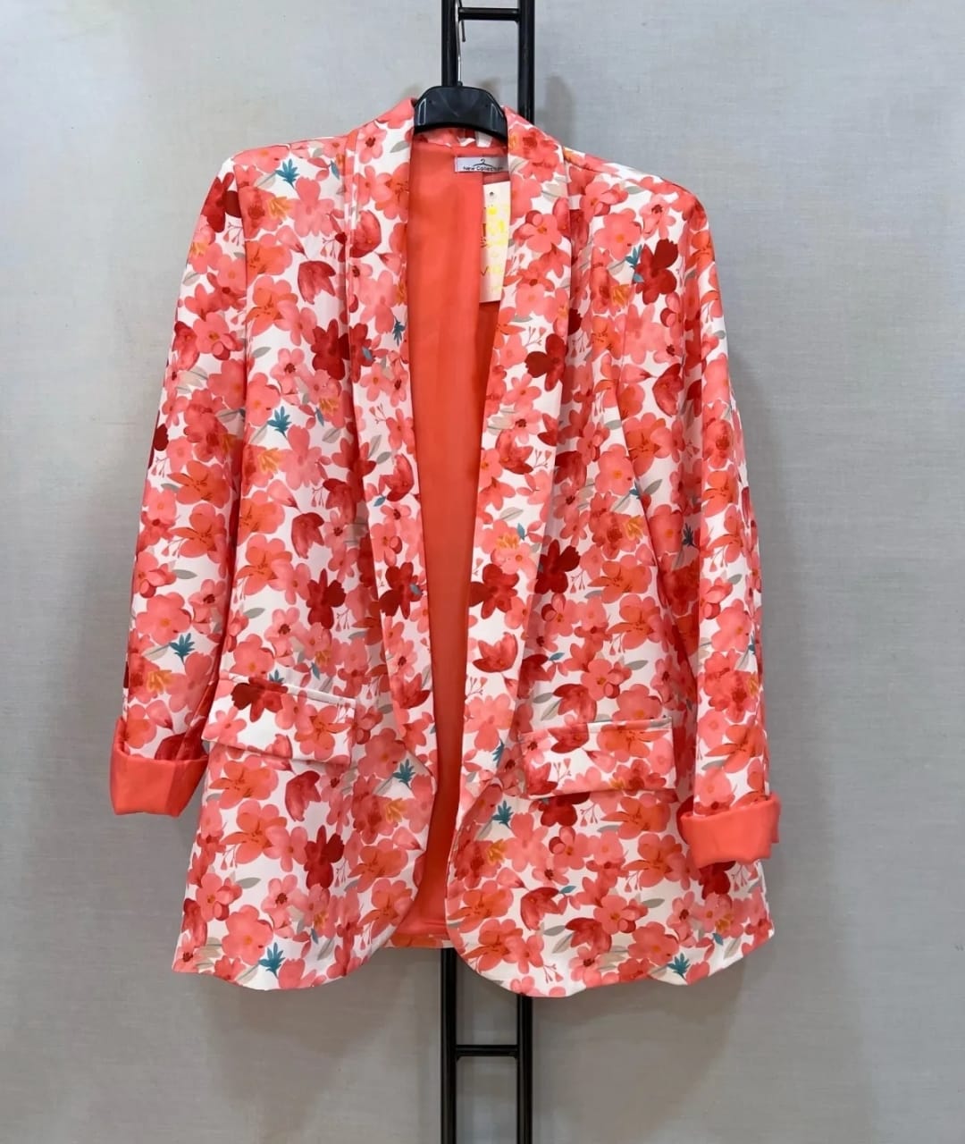 Apportez de la fraîcheur et de la couleur à votre garde-robe avec ce blazer lumineux au motif floral envoûtant ✨