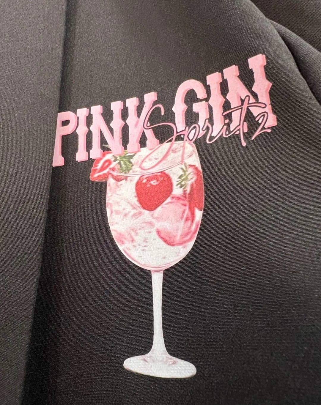 Motif pop-art vibrant représentant un verre de Pink Gin Spritz avec des fraises fraîches