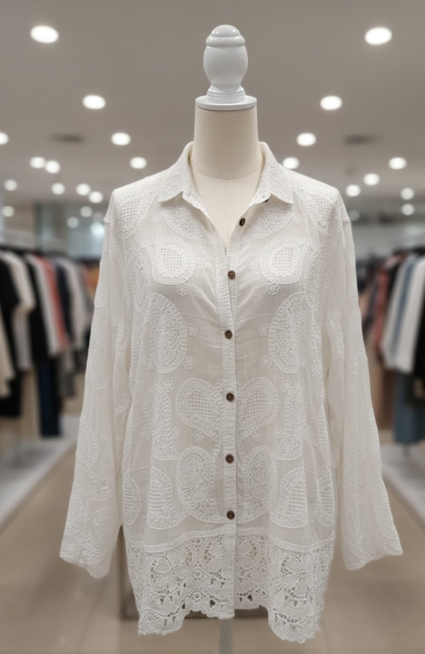 Chemise Blanche en Dentelle - Broderies Anglaises