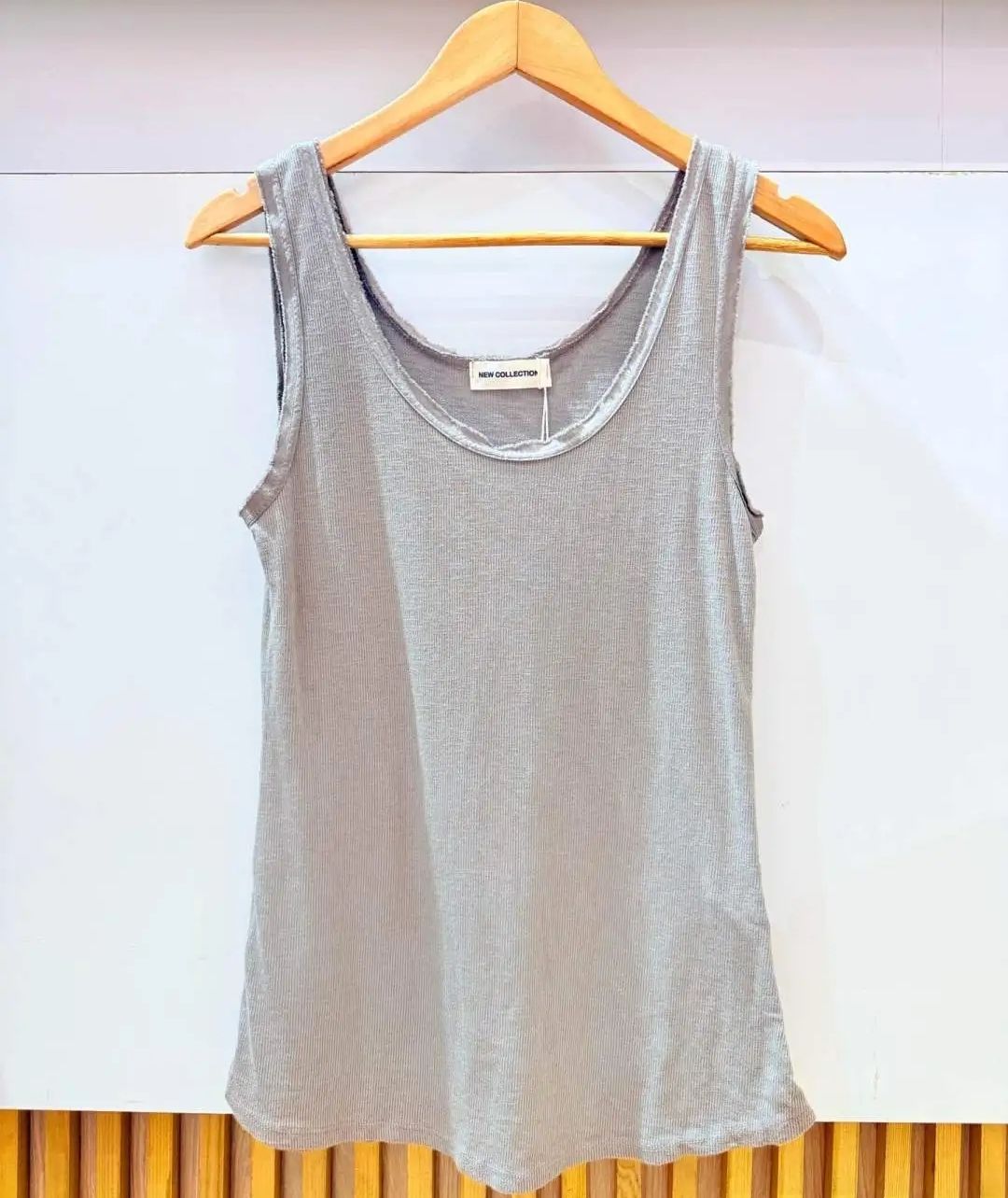 Ce débardeur taupe est sublime associé à un pantalon clair pour un look lumineux ou à un jean brut pour un contraste moderne