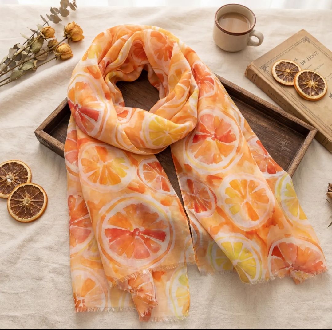 Faites le plein d'énergie avec cette écharpe lumineuse aux motifs d'agrumes