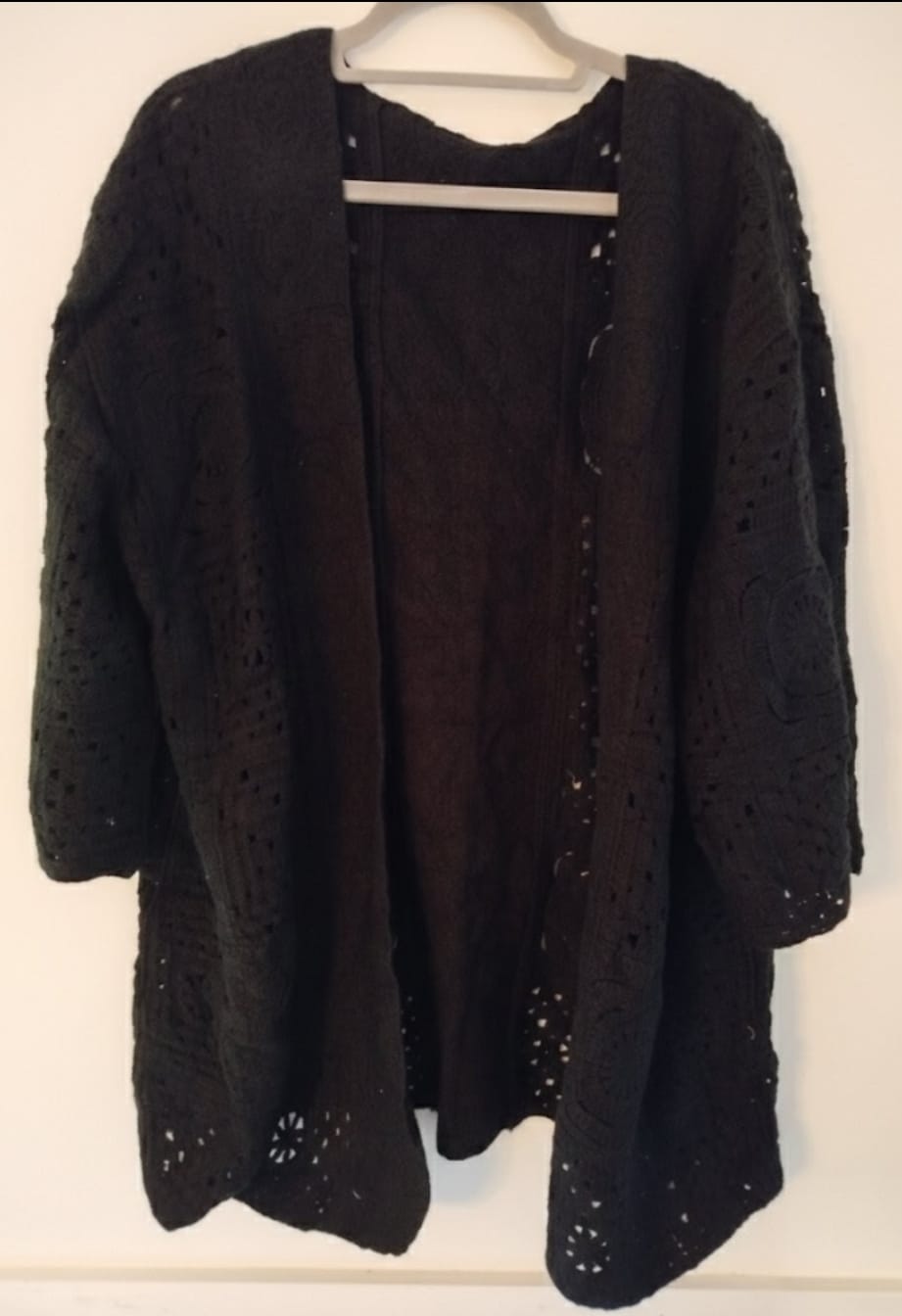 Gilet Long Noir en Maille Ajourée