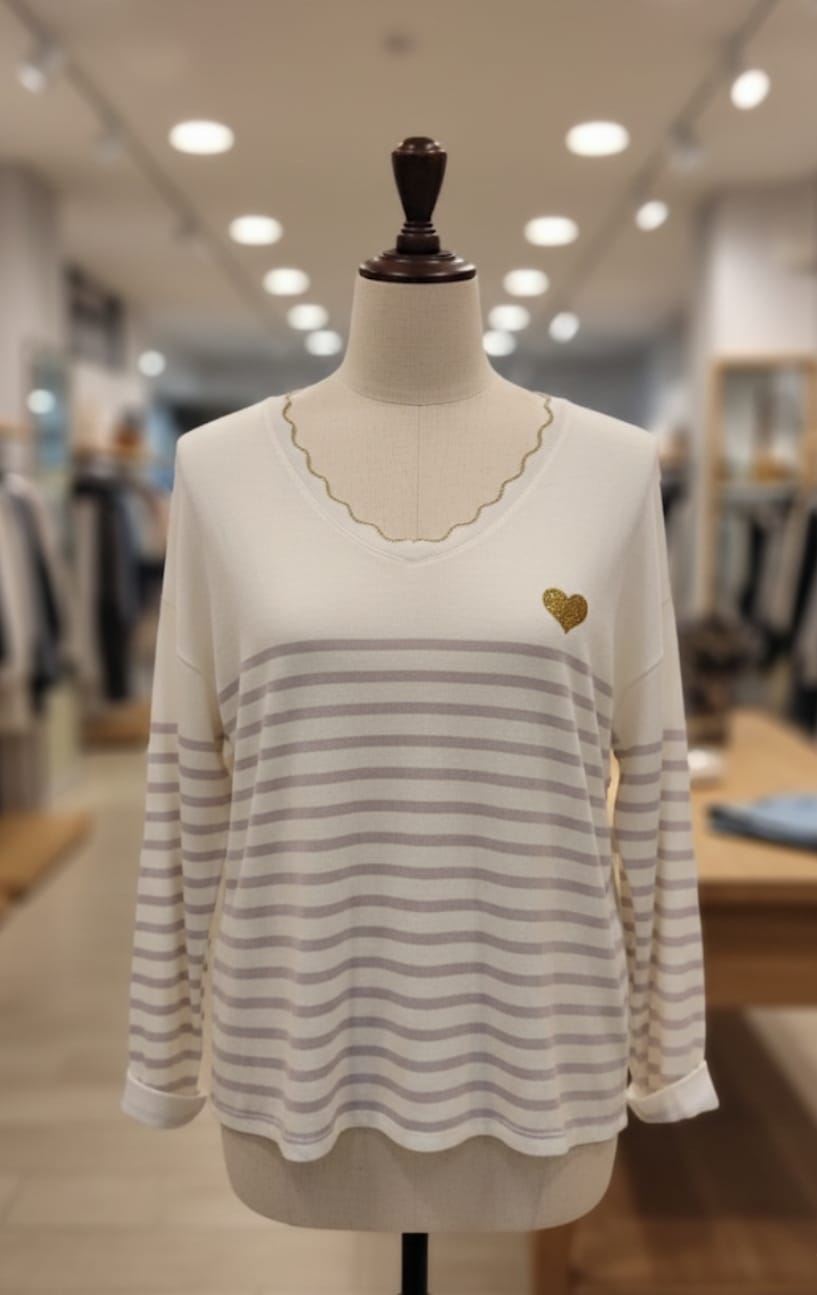 Le cœur doré qui transforme ce basique rayé en une pièce coup de cœur pleine de personnalité