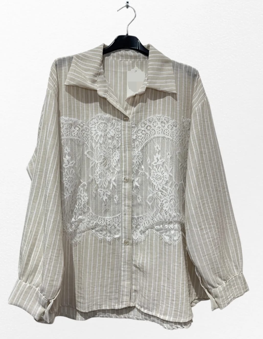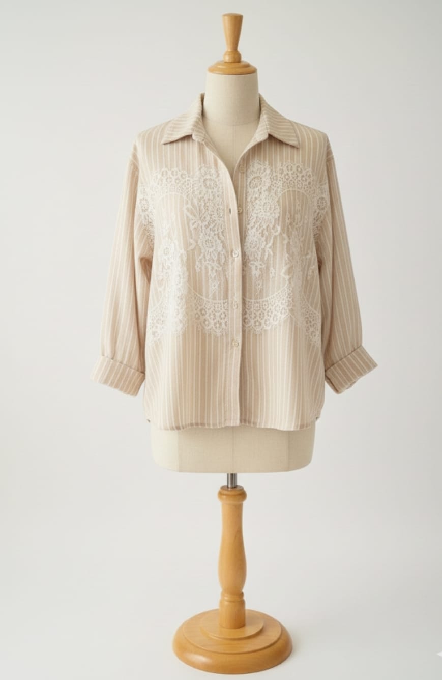 ​La Chemise à Rayures & Empiècement Dentelle