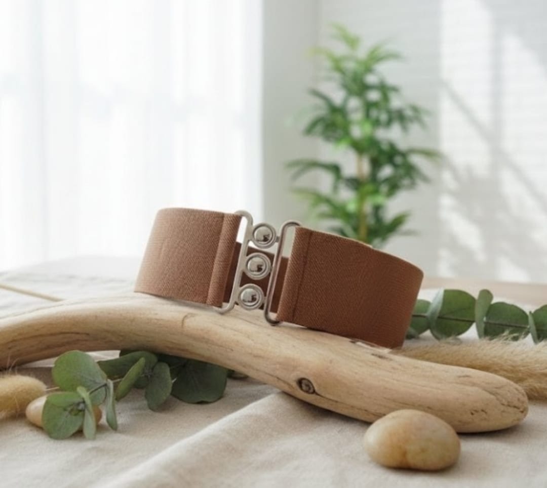 Large Ceinture Élastique Camel à Triple Boucle Argentée