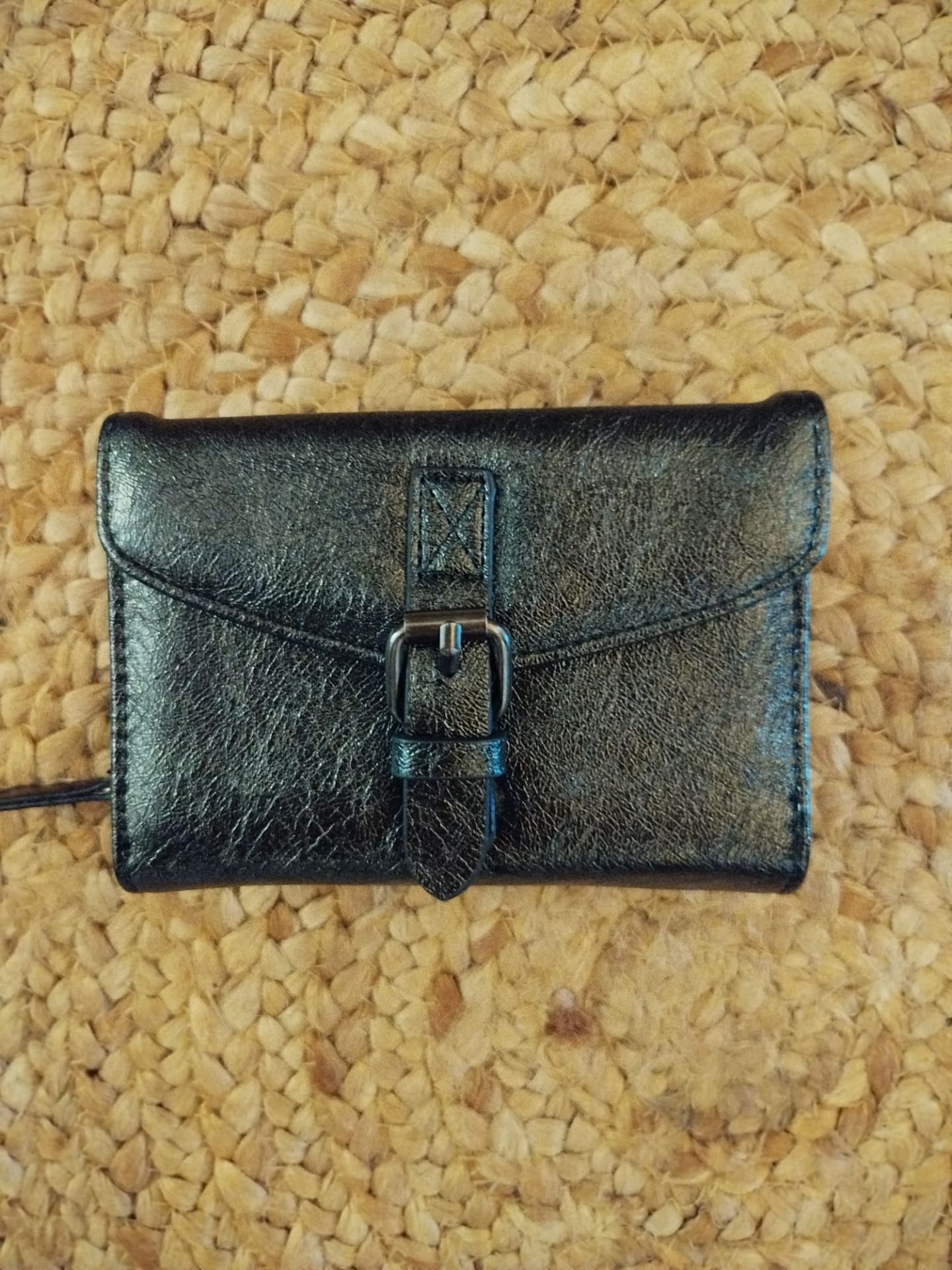 Ce Porte-Monnaie est doté d'une sangle, traversant le devant et sécurisée par une boucle et un aimant, ajoutant une touche d'élégance et de caractère