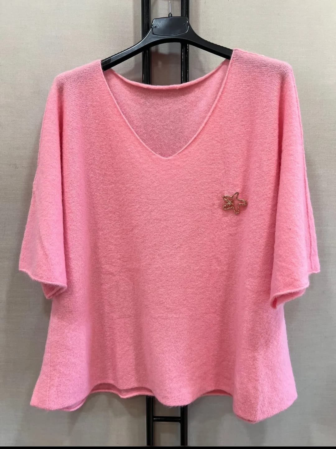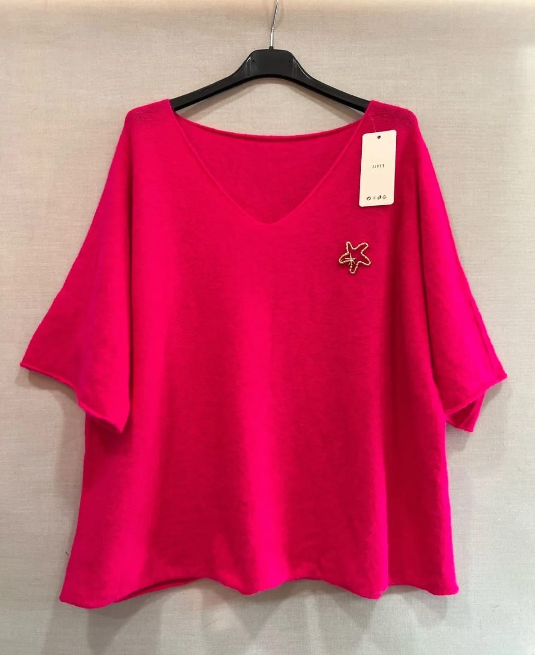 Sa maille douce et son encolure en V dégagée en font le partenaire idéal pour les superpositions et laisser apparaître un chemisier long, une blouse brodée ou un top contrastant en dessous ☁️