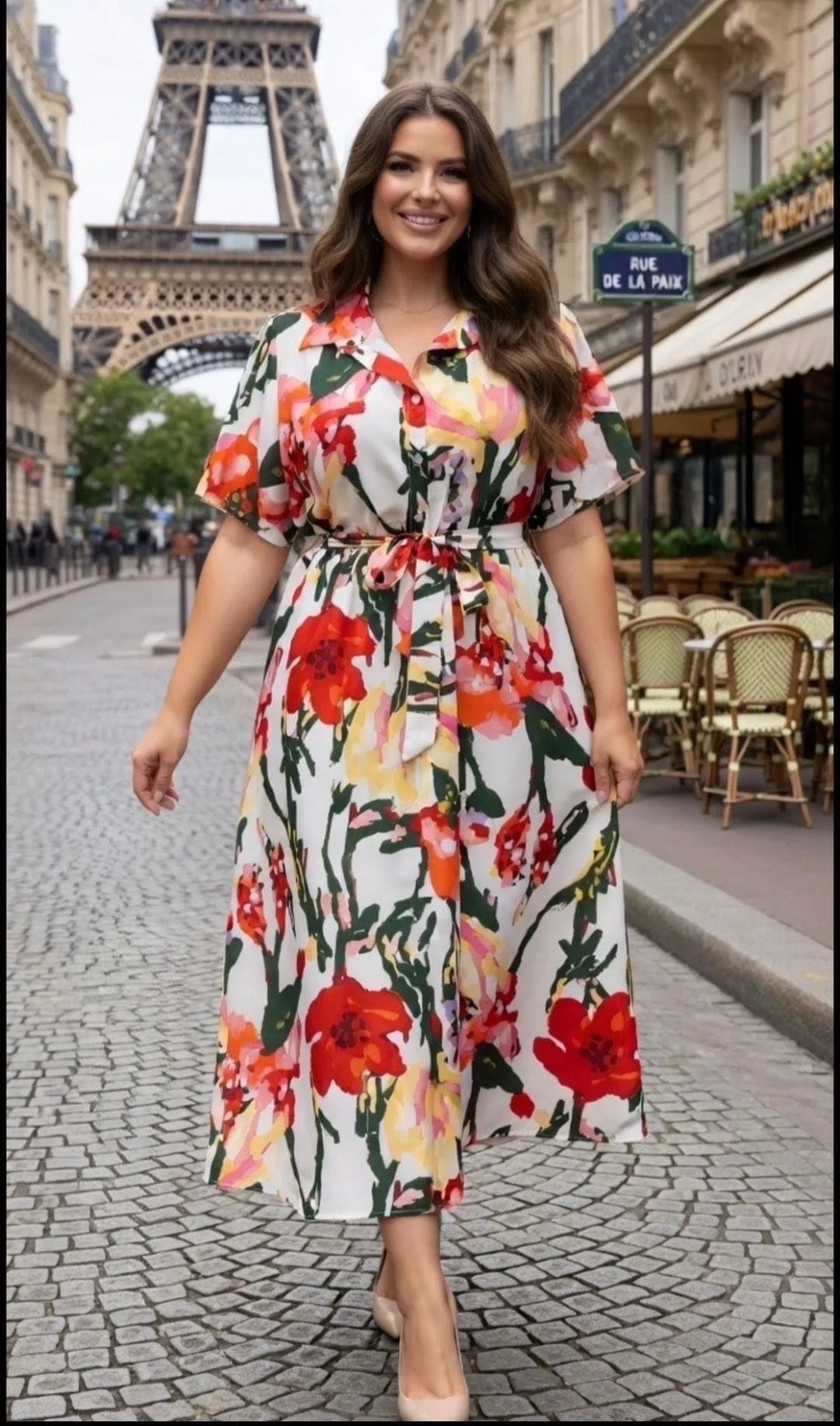 Invitez le printemps dans votre dressing avec cette magnifique robe chemise midi, une pièce forte qui capture l'élégance parisienne et la fraîcheur d'un jardin en fleurs