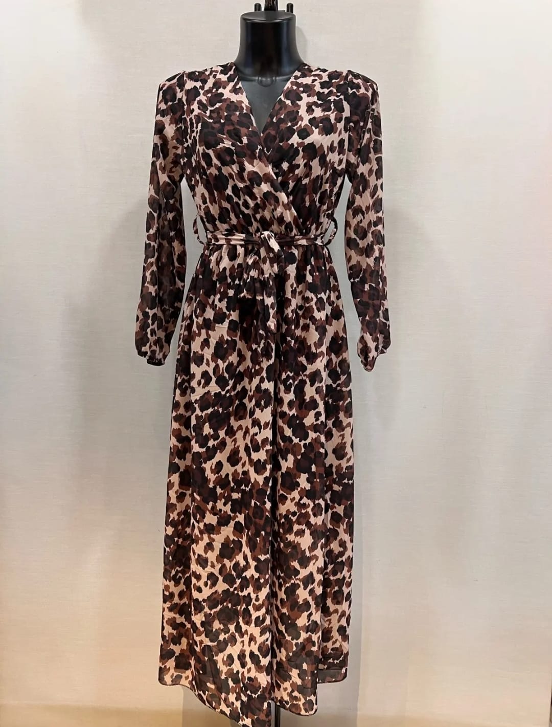 Affirmez votre féminité avec cette robe longue à imprimé léopard