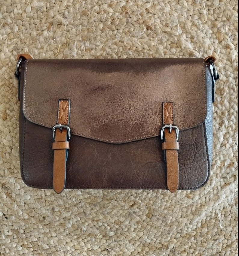 Sac Bandoulière Besace Chocolat et Rabat Métallisé