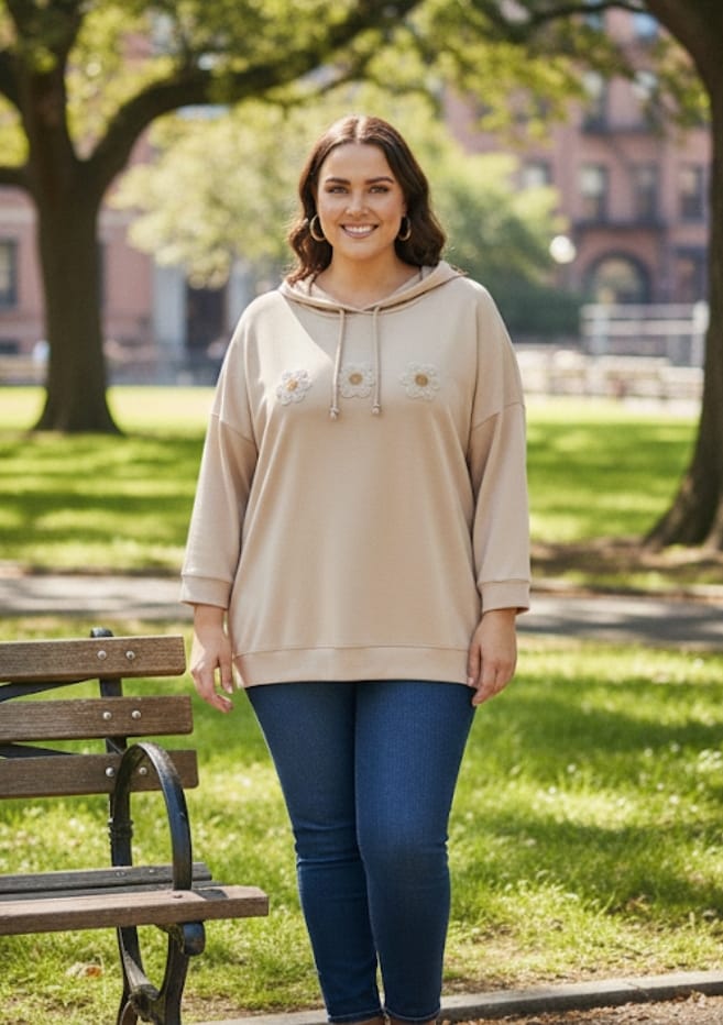 Sweat Confortable aux Fleurs Brodées et Capuche
