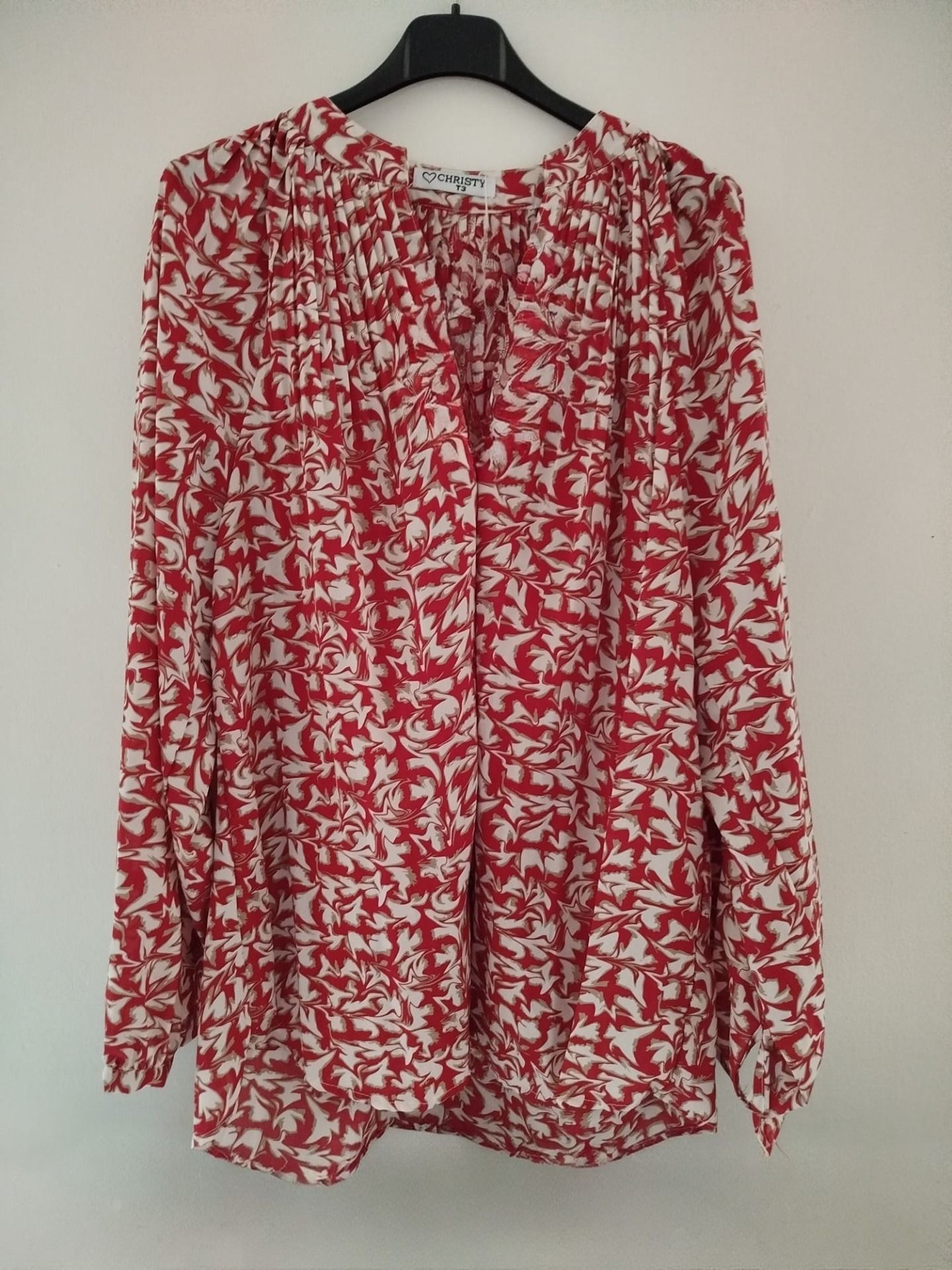 Cette blouse légère se pare d'un motif feuillage abstrait rouge sur un fond blanc pour un contraste dynamique