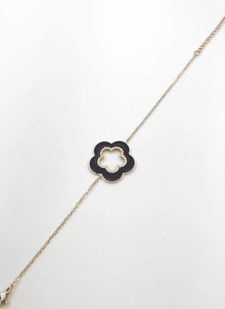Bracelet Chaîne Fleur Noire et Or – Acier Inoxydable