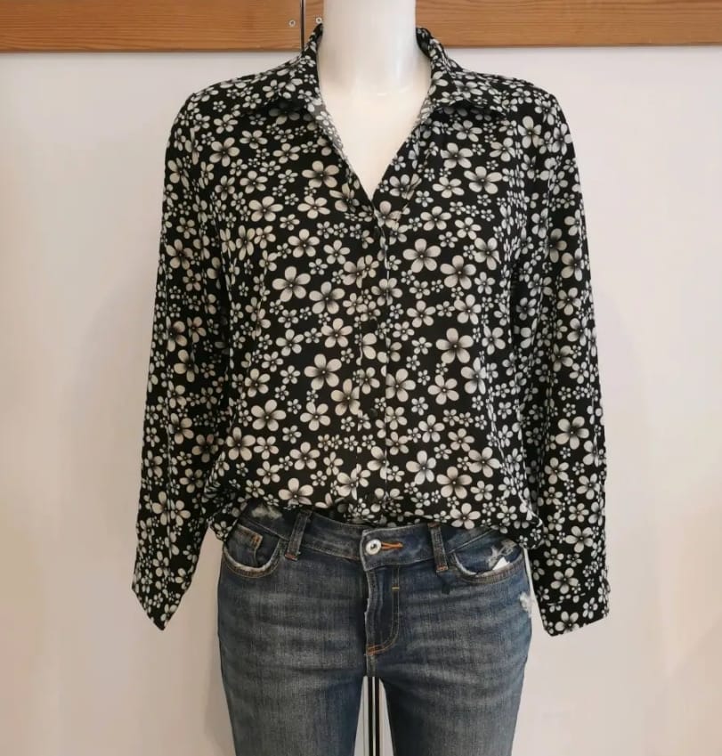 Chemise Fluide - Petites Fleurs Noir et Blanc