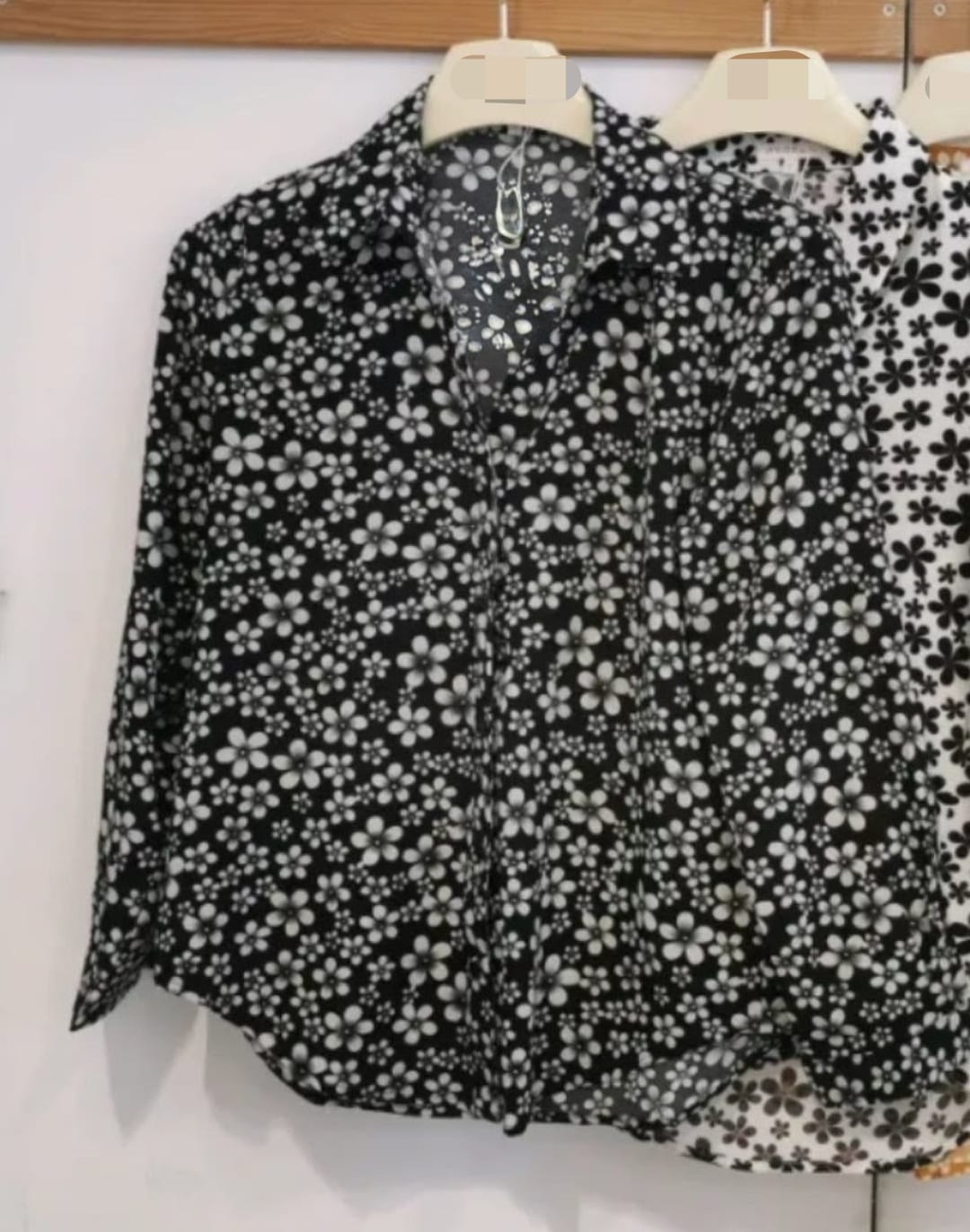 Adoptez un look chic et facile à porter avec cette chemise fluide au motif floral bicolore