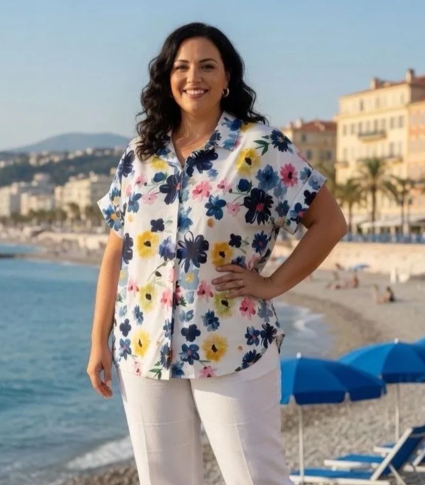 Pour un look harmonieux, associez ce haut imprimé à un bas uni de couleur neutre (blanc, beige ou denim) afin de laisser l'imprimé floral être la star de votre tenue 🌸☀️