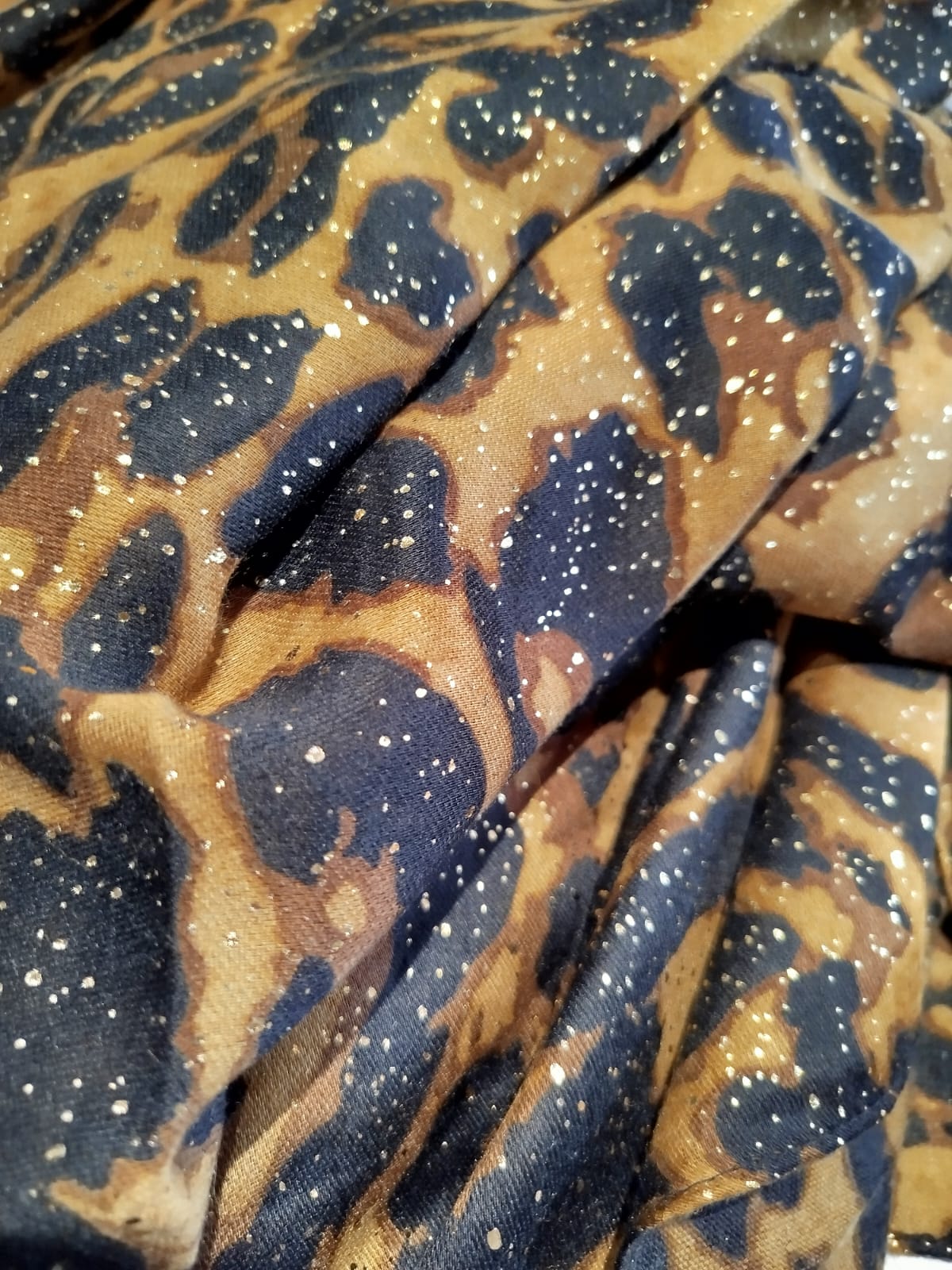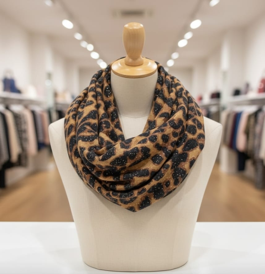 Son imprimé léopard intemporel et son motif moucheté rehaussé de touches dorées apportent une touche d'élégance audacieuse à toutes vos tenues