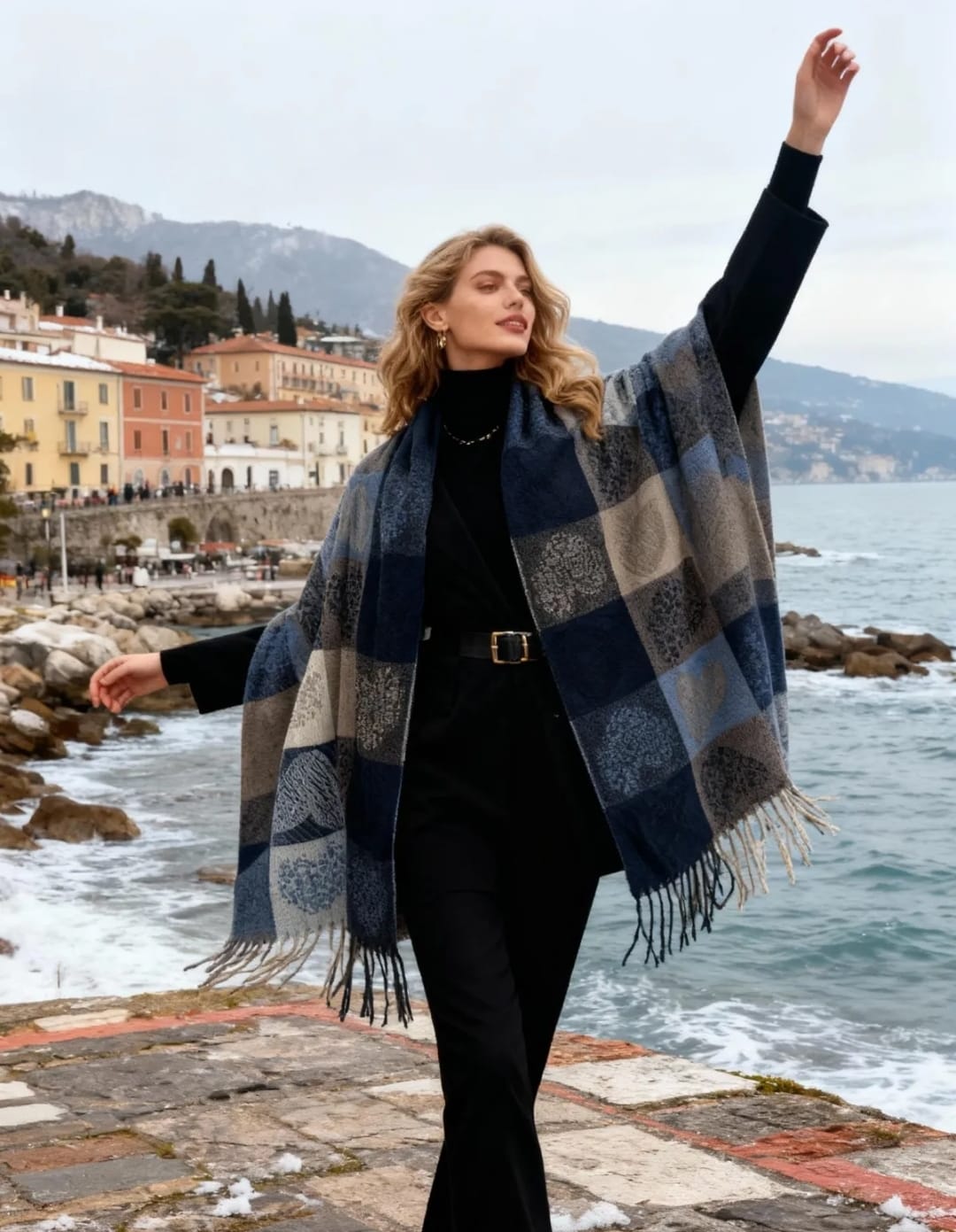 Cette maxi écharpe épaisse est confectionnée dans un tissu doux et enveloppant