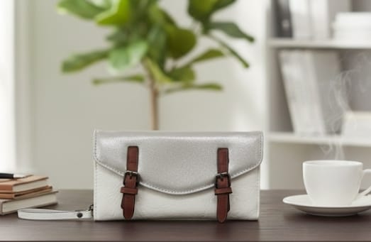Magnifique portefeuille au design unique, arborant un Blanc sublimé par des reflets argentés scintillants sur le rabat ✨