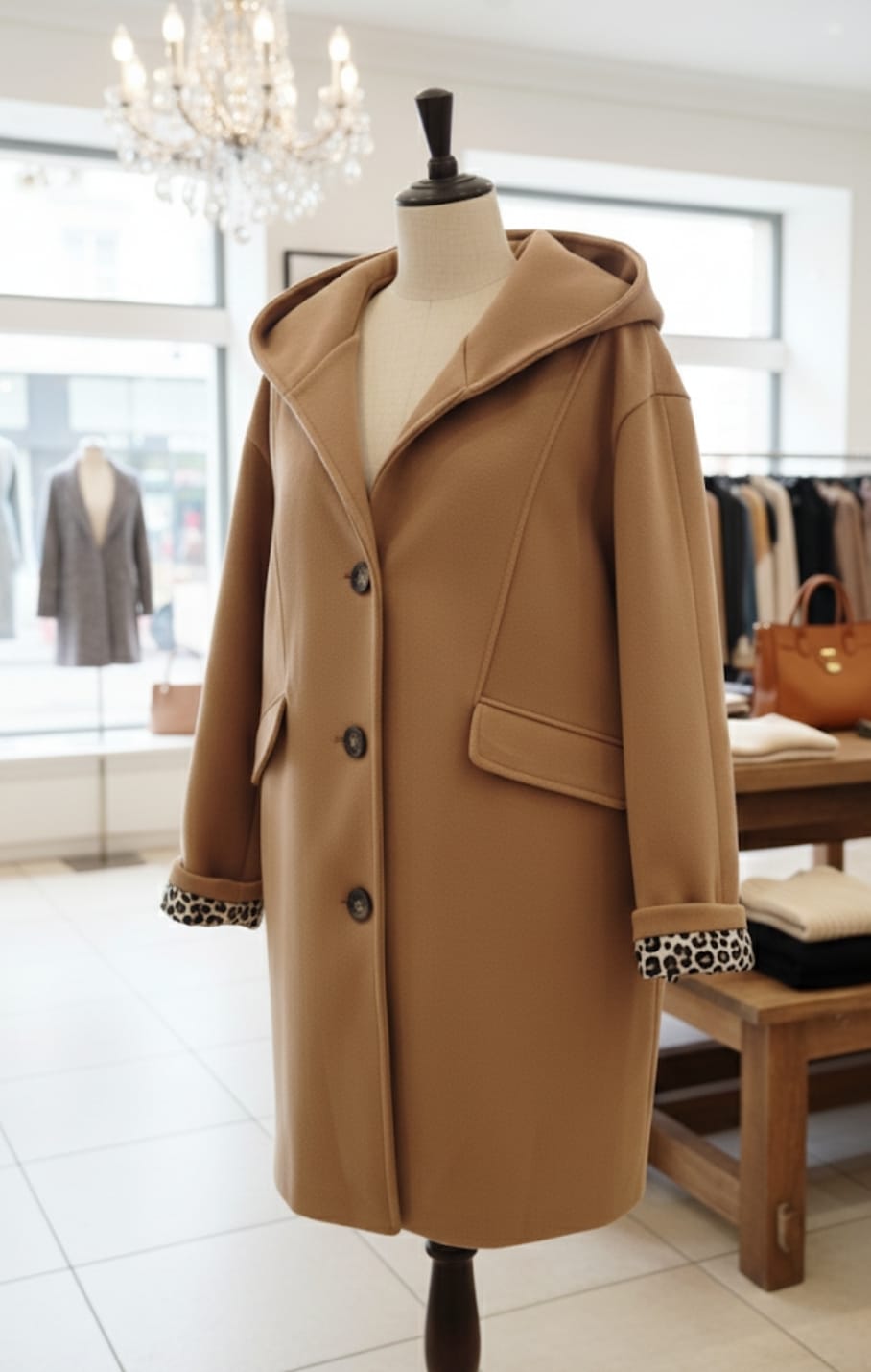 Manteau Mi-Long à Capuche "Léopard Chic"