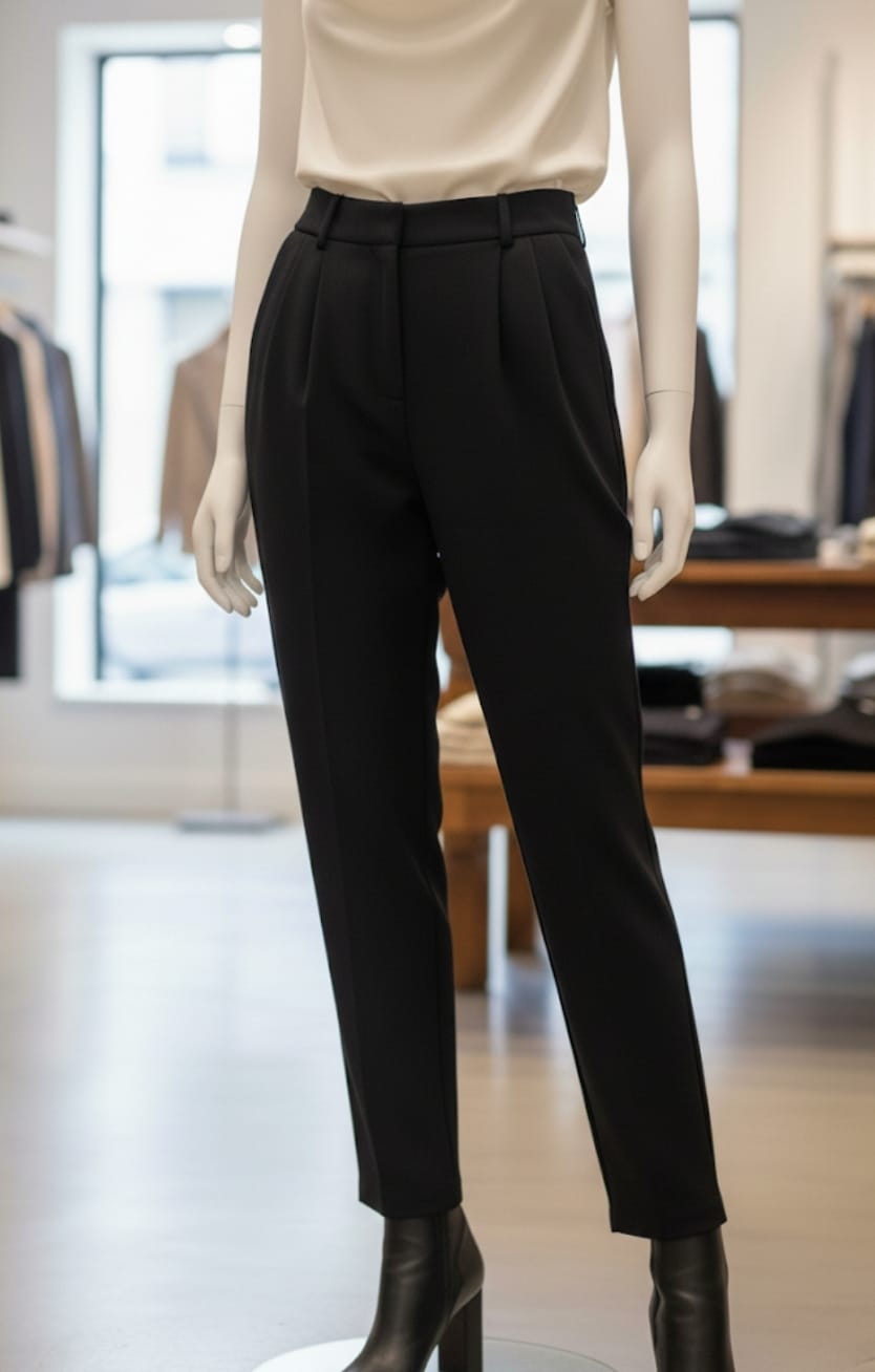 Ce pantalon se marie parfaitement avec une chemise blanche pour un look classique et élégant, ou avec un top noir pour un contraste saisissant