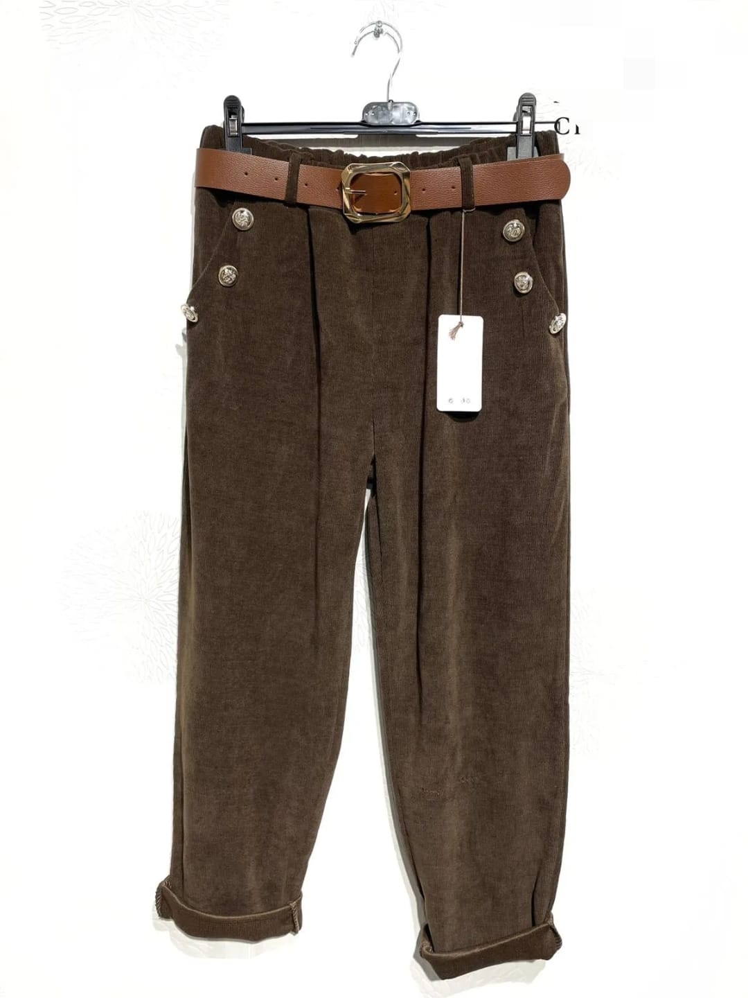 La coupe est droite, légèrement carotte avec ou non des revers aux chevilles