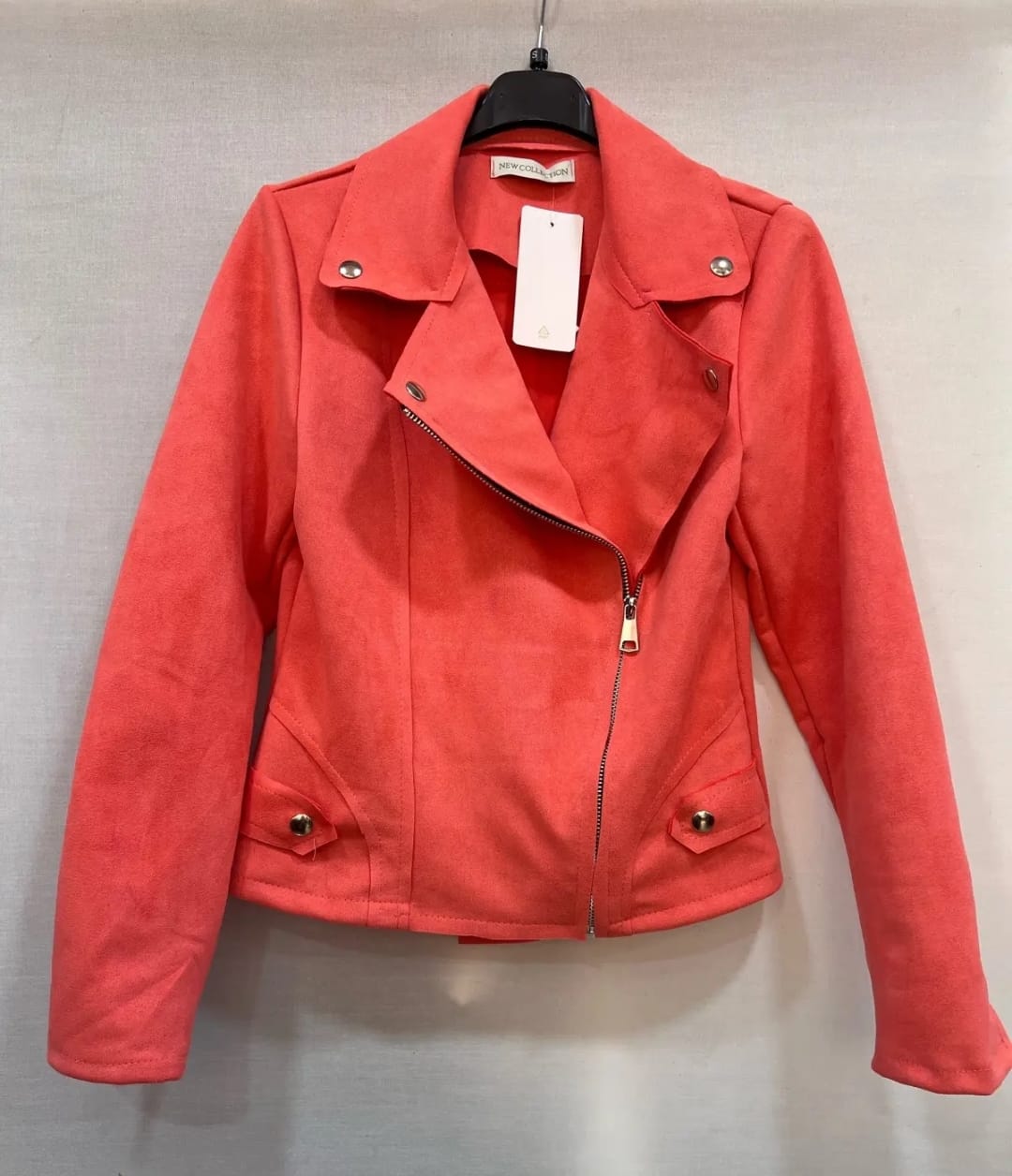 Ce perfecto présente une coupe cintrée et moderne dans une nuance corail lumineuse 🧥