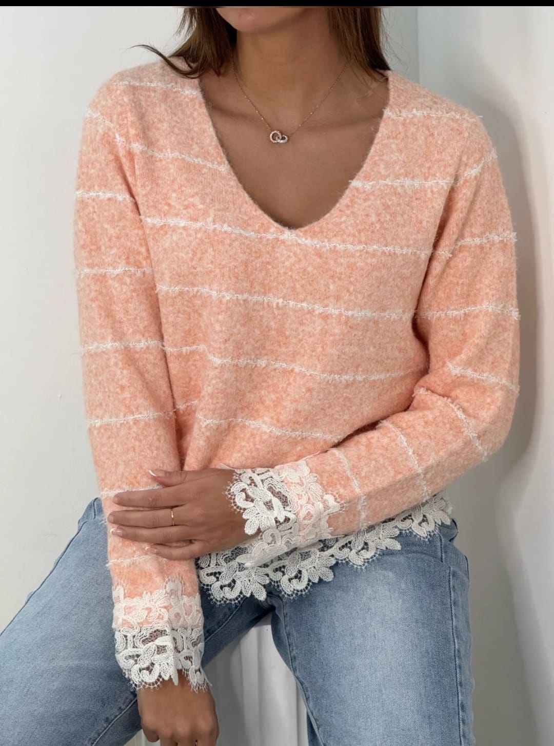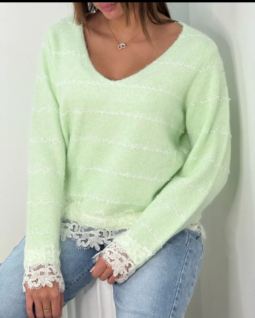 Laissez-vous séduire par ce pull d'une douceur infinie qui allie confort et romantisme absolu