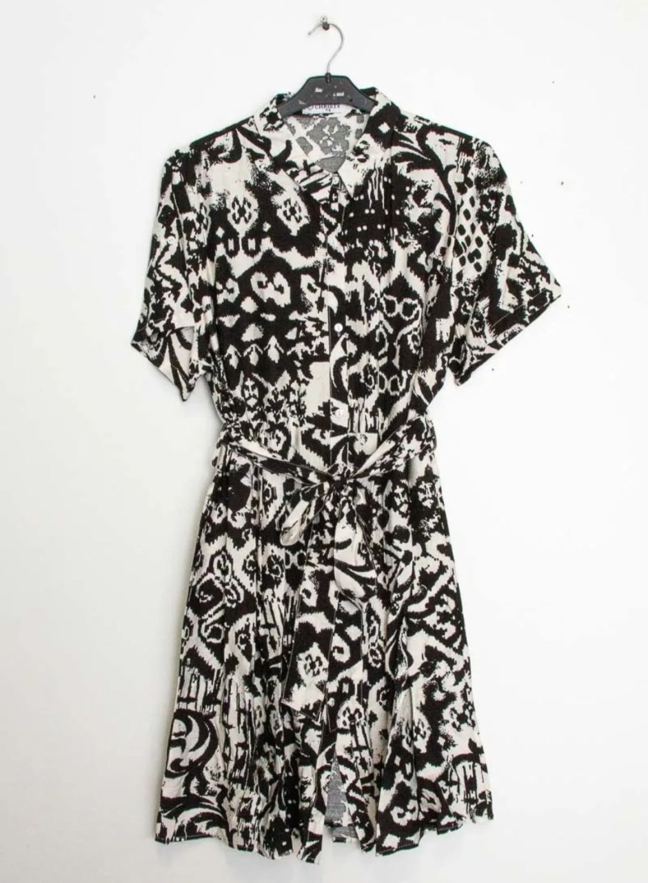 Robe Chemise à Motifs Abstraits Noir & Blanc