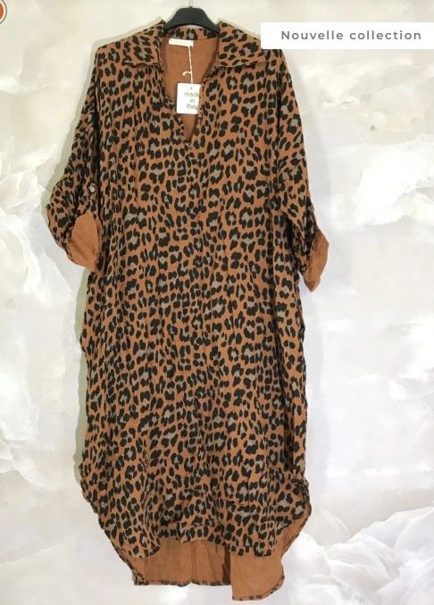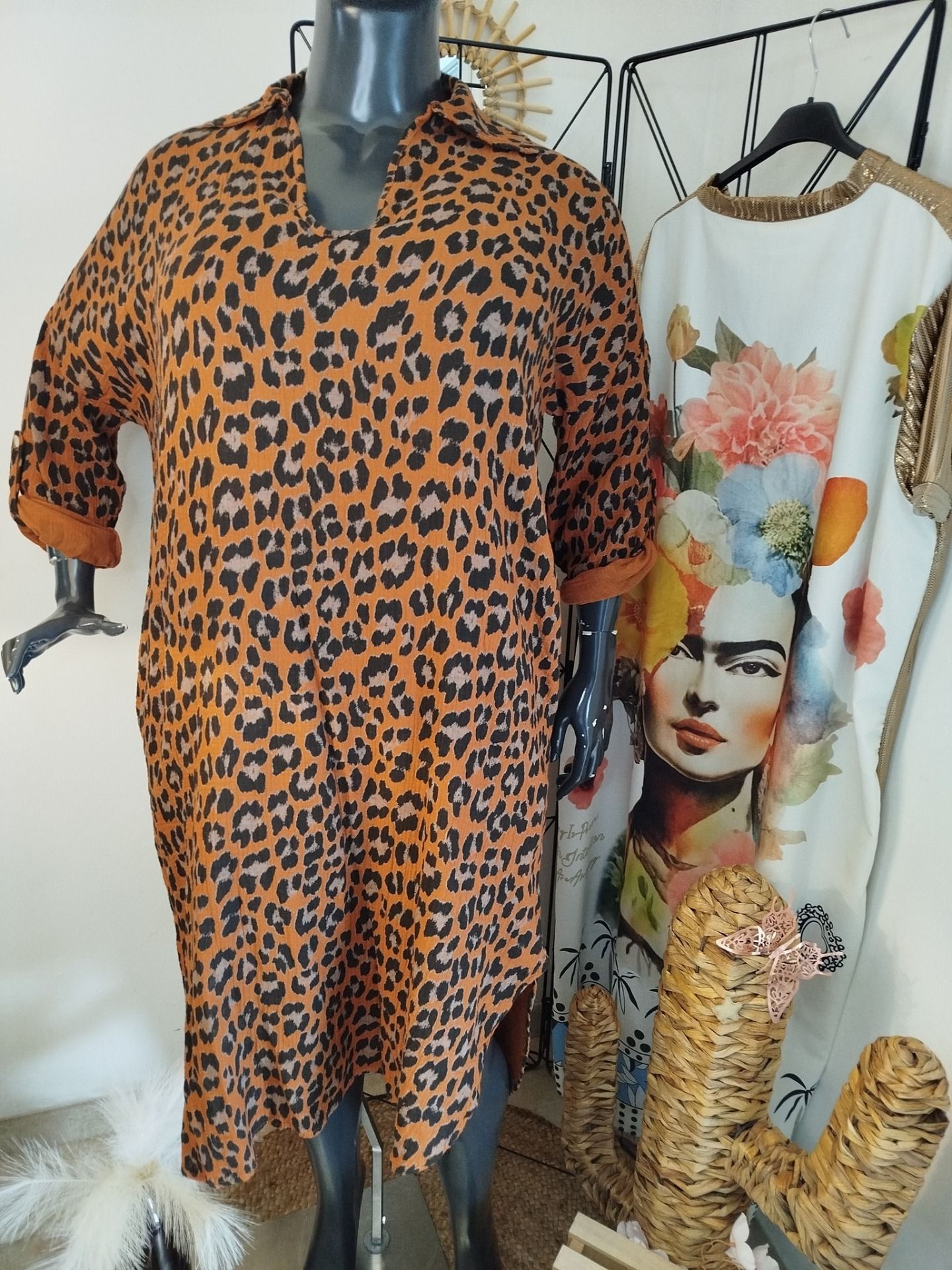 Laissez-vous séduire par l'audace et la fluidité de notre robe tunique imprimé léopard !