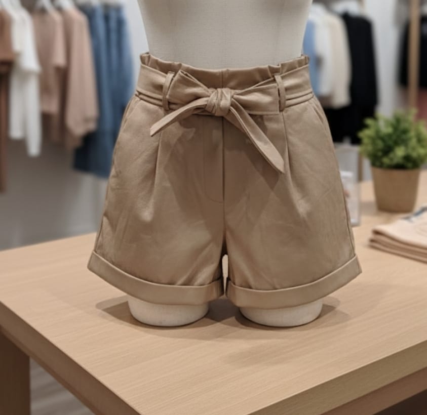 Ce short taille haute en simili-cuir d'une magnifique couleur beige doré