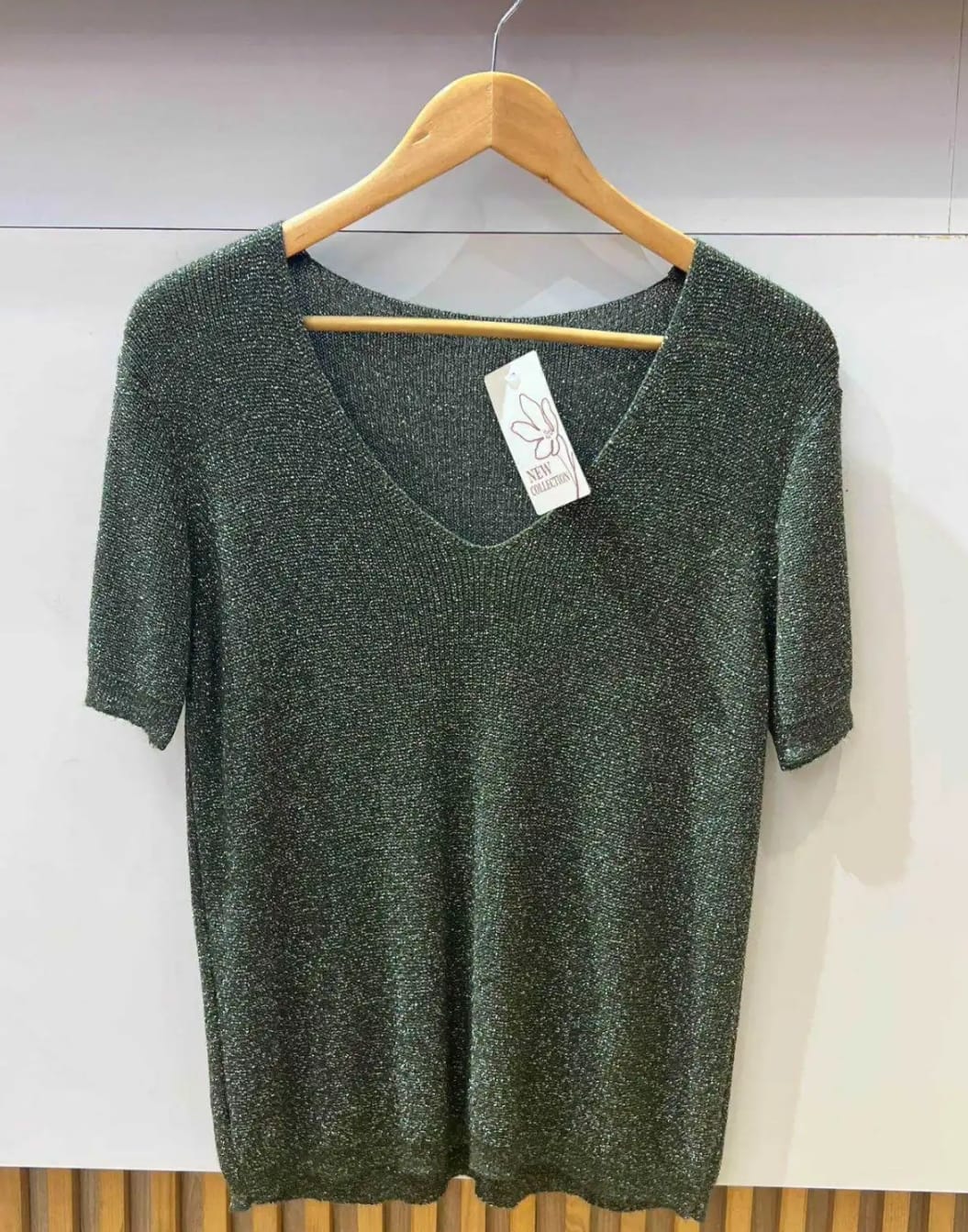 L'éclat discret du fil scintillant qui rend ce haut parfait pour les occasions festives sans être trop voyant 🌟