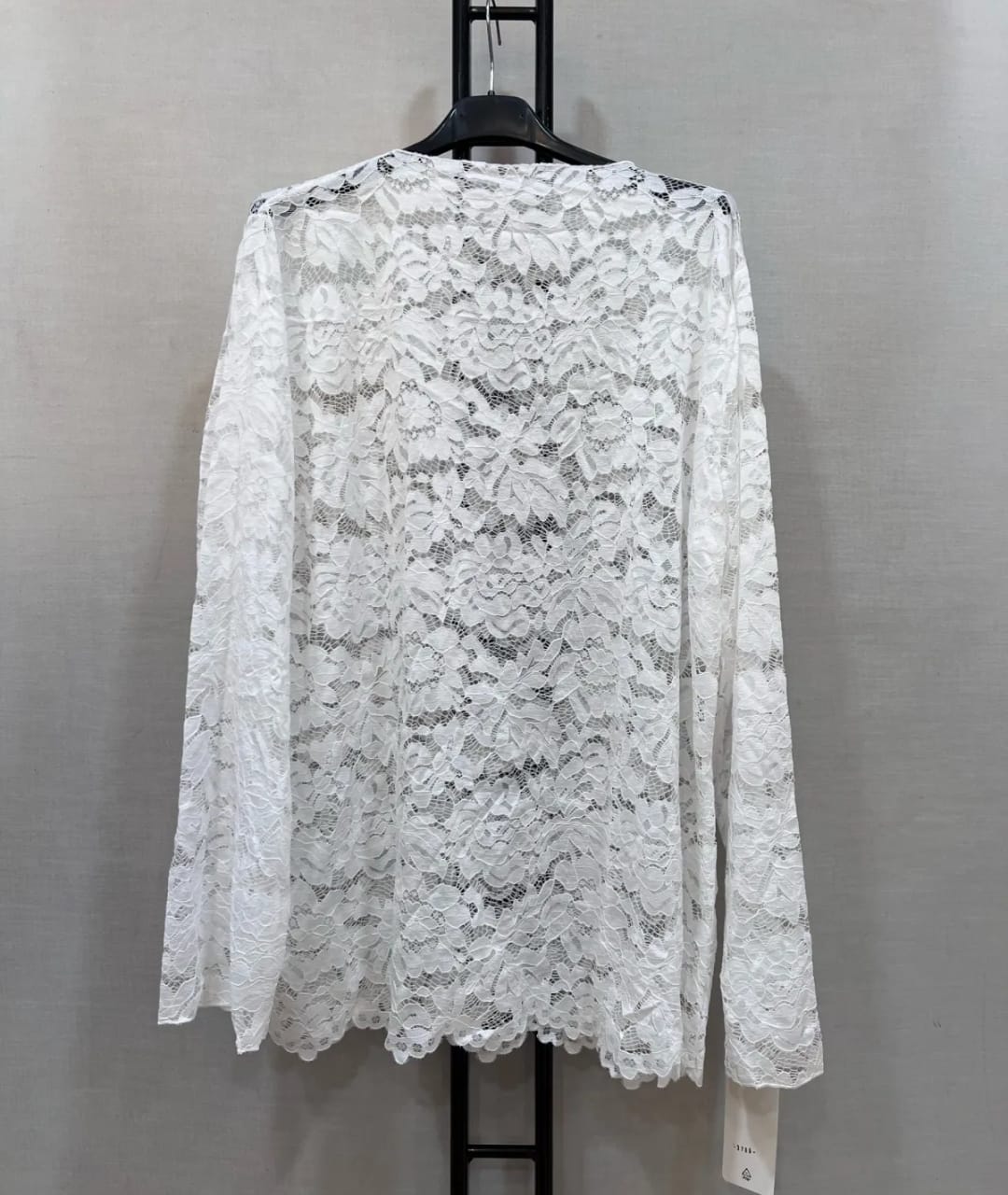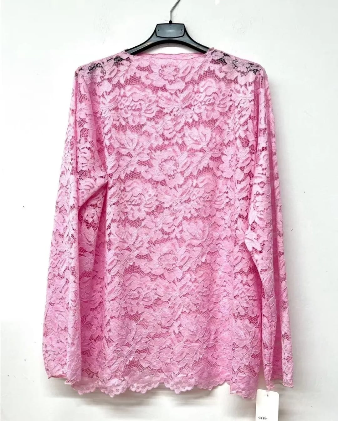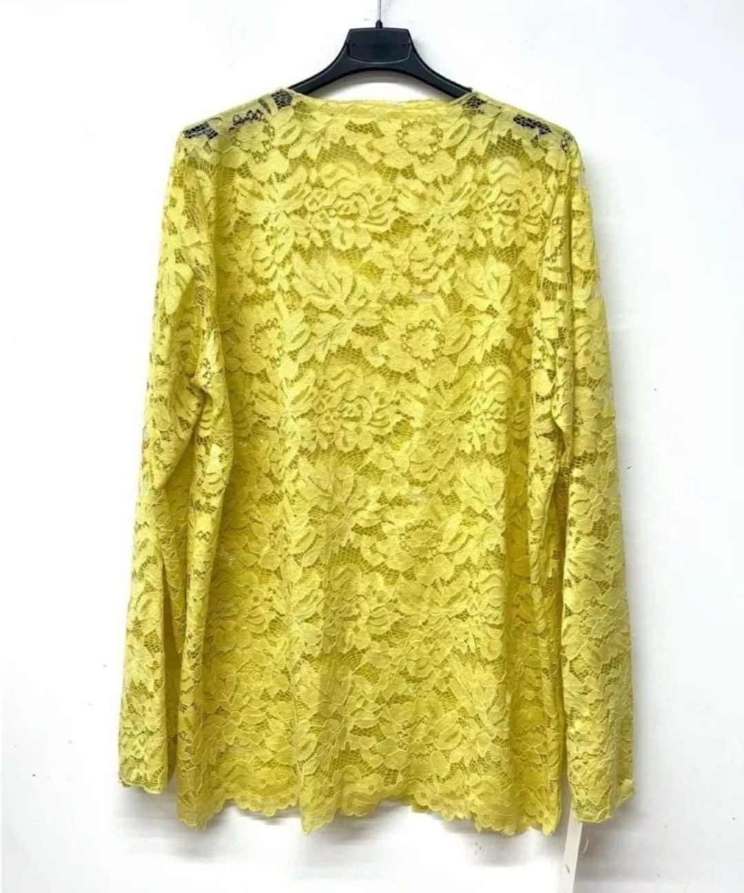 Ce top à manches longues se pare d'une dentelle fleurie raffinée qui habille l'ensemble du modèle pour un rendu féminin