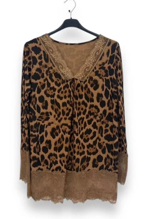 Ce top à manches longues arbore un imprimé léopard, apportant une énergie sauvage et tendance à votre garde-robe