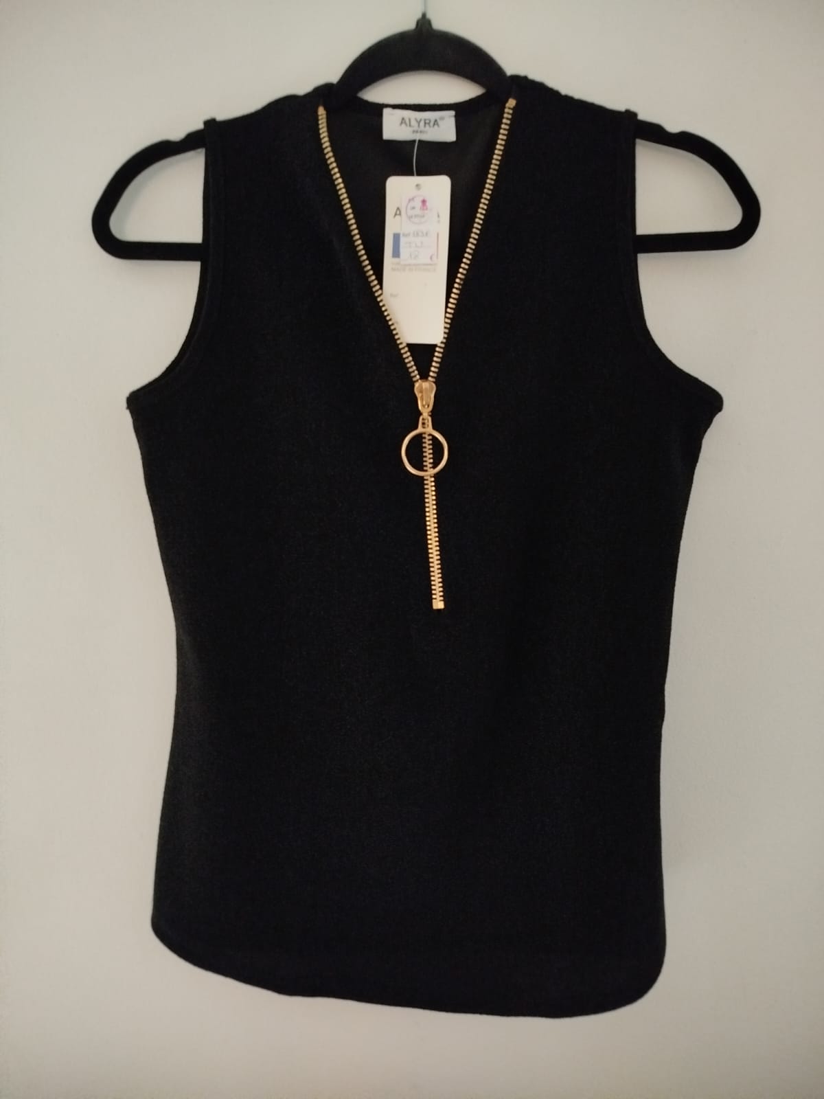 Ce top noir sans manches est une pièce essentielle au style audacieux, parfaite pour être portée seule ou sous une veste ouverte ✨